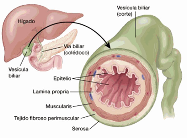El cáncer de vesícula se ubica en la capa interna de la vesícula, que es la que está en contacto con la bilis, es más frecuente el del tipo denominado adenocarcinoma y su agresividad va en relación directa a la diferenciación que muestran sus células, habiendo, el muy diferenciado (menos agresivo), el moderadamente diferenciado (agresividad intermedia) y el poco diferenciado que es de alta agresividad.
